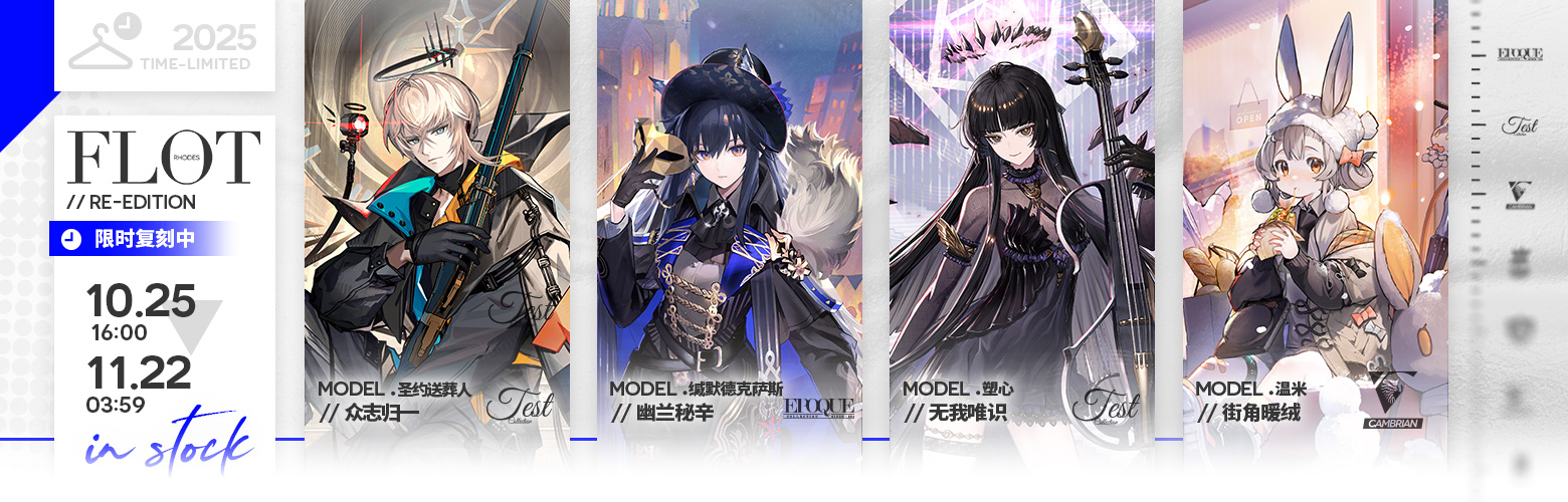 活动说明:活动期间以下干员时装将在时装商店上架并进行限时贩售: