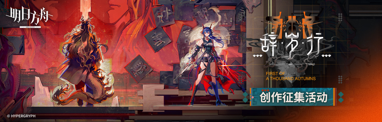 即日起至活动结束,在微博平台带话题#明日方舟辞岁行#、#明日方舟创作征集# 并@罗德岛创作社 进行原创投稿,即可参与创作征集活动,有机会获得角色手办、游戏周边等奖励。