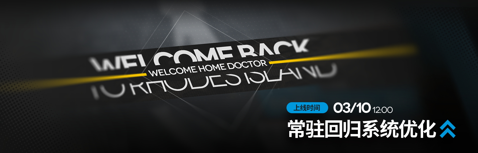 更新说明:03月10日 12:00版本更新后,触发常驻回归系统所需的离线时长将由60天下调至30天(常驻回归系统部分内容将根据离线时长有所区别,详情请以游戏内为准),回归任务类型也进行了优化;此外,满足指定条件的玩家还可参与【归航寻访】、触发【剿灭作战】关卡限时全开效果