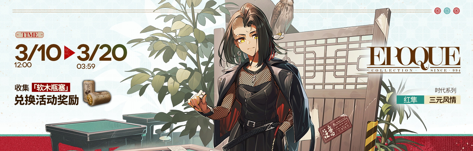 【红酒锦标赛筹委会】兑换奖励:时装【时代系列 - 三元风情 - 红隼】、事相碎片、模组养成材料、高级养成素材、作战记录、龙门币、招聘许可等