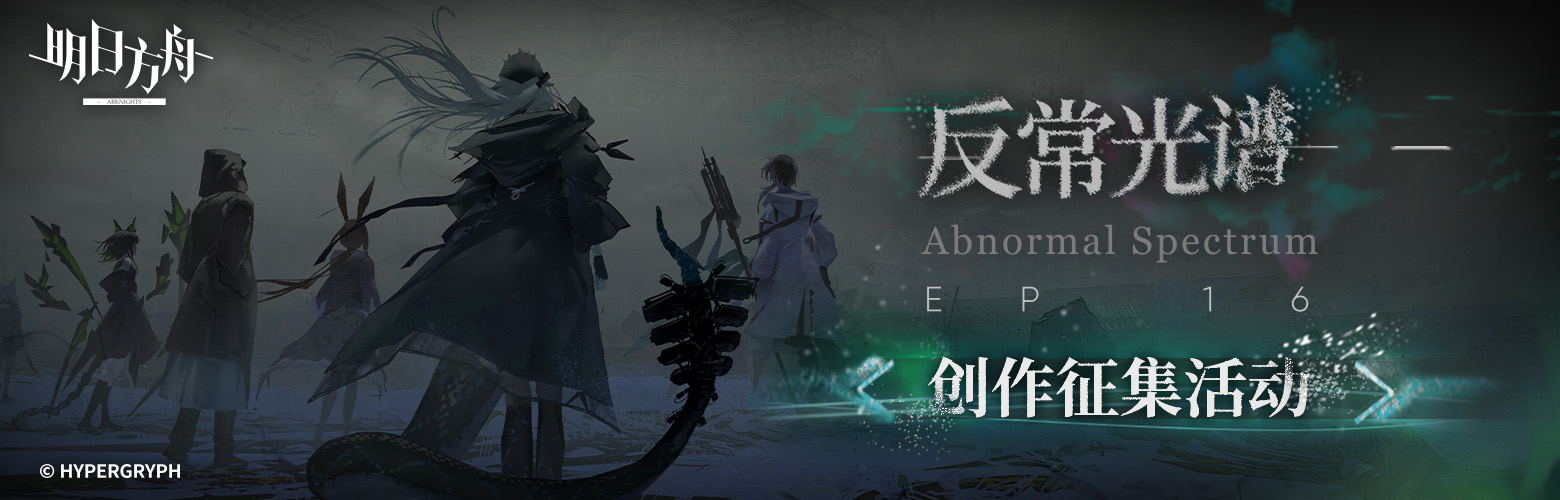 即日起至活动结束,在微博平台带话题#反常光谱#、#明日方舟创作征集# 并@罗德岛创作社 进行原创投稿,即可参与创作征集活动,有机会获得角色手办、游戏周边等奖励。