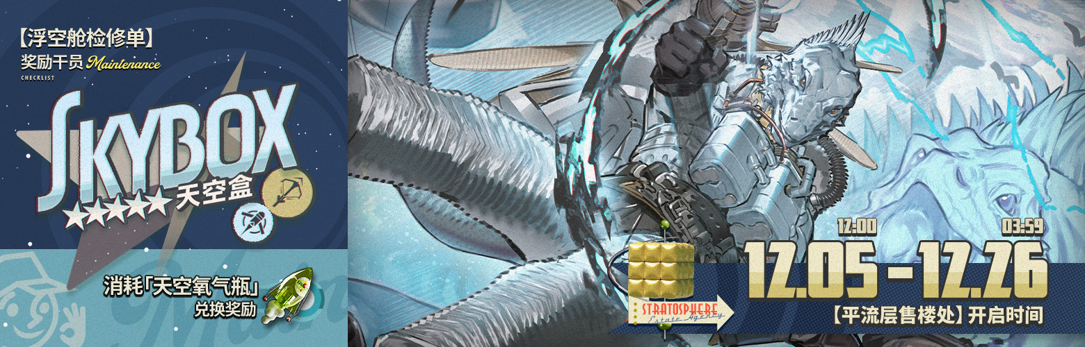 主要奖励:活动干员【★★★★★:天空盒】、【天空生活体验舱】家具(部分)、模组养成材料、「天空氧气瓶」等