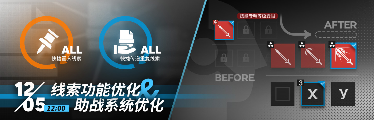 更新说明:12月05日 12:00版本更新后,线索功能与助战系统将进行优化: