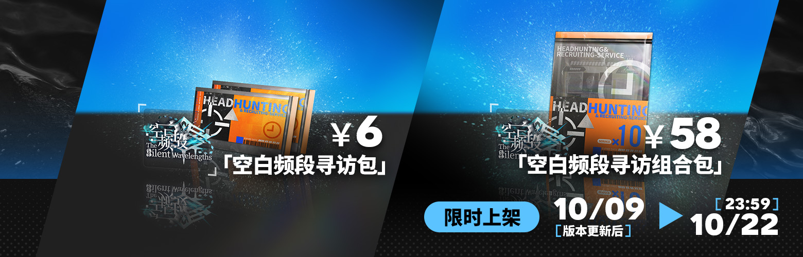 ◆新增干员【真言】、【折桠】、【冬时】除加入【空白频段】寻访外,将在10月23日04:00后加入并常驻其余【标准寻访】卡池
